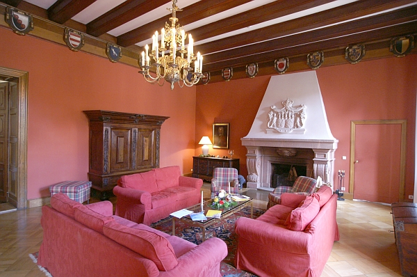 Auch die Zimmer des Schlosses sind mit viel Liebe zum Detail restauriert worden. So führt eine Treppenanlage von der Eingangshalle in das Obergeschoss zum Gartensaal mit seinen illusionistischen Garten- und Heckenlandschaften. Zahlreiche Säle haben ihre alten Stuckdecken wieder erhalten. Das Kaminzimmer mit seinem umlaufenden Wappenfries und der Holzbalkendecke stahlt Gemütlichkeit aus.