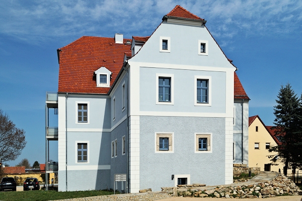 Es ist schon erstaunlich, welche Wandlung das Herrenhaus in Särichen bei Kodersdorf gemacht hat: Noch 2016 konnte man sich kaum vorstellen, dass aus dem ungenutzten und unansehnlichen Bau mit zugemauerten Fenstern einmal etwas Modernes werden sollte. Dabei hat Särichen eine spannende Historie und besitzt im Kern noch Bausubstanz aus der Renaissance. Auf T-förmigem Grundriss erhebt sich über einem hohen Sockelgeschoss ein zweigeschossiger verputzter Bau mit Ecksteinquaderung und Krüppelwalmdach. Profilierte Fenster sind auf die Mitte des 16. Jahrhunderts zu datieren und das Obergeschoss war im 18. Jahrhundert noch in Fachwerk ausgeführt, wie eine Zeichnung des Görlitzer Stadtbeamten und Zeichners der Oberlausitz Johann Gottfried Schultz aus dem Jahre 1797 eindrucksvoll belegt. Eine Freitreppe führte zum Hof. In den vergangenen 200 Jahren sind natürlich Veränderungen vorgenommen worden und auch bei den Umbaumaßnahmen seit dem Verkauf des Herrenhauses 2016 an einen einheimischen Bauherrn mussten moderne Standards beachtet werden. Dennoch ist es gelungen, Teile der alten Bausubstanz in die Moderne zu überführen und dem Herrenhaus wieder ein herrschaftliches Gepräge zu verleihen.