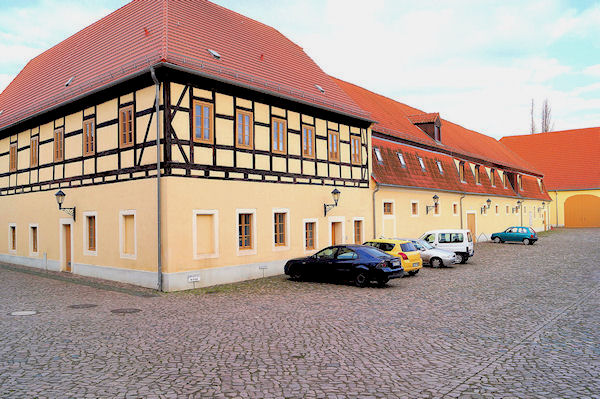 Der vor dem Herrenhaus liegende Rittergutshof ist vollständig von Gebäuden umrahmt. 1822 brach in der Scheune des Gutes ein Feuer aus, das alle Wirtschaftsgebäude vernichtete. Doch Domherr Georg Heinrich von Hartitzsch ließ die Hofgebäude bereits im folgenden Jahr wieder neu errichten.