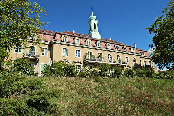 Herausragendes Gebäude auf dem Königlichen Weinberg ist jedoch das 1936 durch die Architekturfirma Lossow & Kühne oberhalb der Königlichen Villa errichtete Schloss Wachwitz. Es diente Friedrich Christian von Sachsen, dem zweitältesten Sohn vom letzten sächsischen König Friedrich August III., als Wohnsitz. Äußerlich sieht man es dem Schloss nicht an, dass es erst in den 1930er Jahren entstand, ähnelt es mit seinem Mansarddach, den Dachgauben und dem Dachreiter mit Glockenturm und Zwiebelhaube eher einem Barockschloss aus dem 18. Jahrhundert. Und das beabsichtigte der Prinz sicher auch, schließlich hatte er eigene Vorstellungen von seiner schlossartigen Wohnstätte. Die finanziellen Mittel flossen dem Bauherrn aus der Fürstenabfindung zu, die das sächsische Adelsgeschlecht 1926 erhalten hatte.