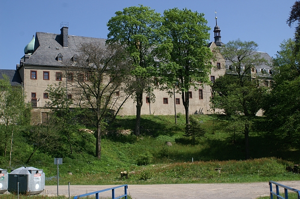 Unmittelbar in die Schlossbefestigung eingebunden ist die dem heiligen Georg geweihte Kirche. Das jetzt massive Gebäude von 1643 ist einschiffig mit steilem aufbaulosem Satteldach und drei Anbauten. Im Innern befinden sich eine bemalte Kassettendecke und beidseitig aufgehängte Emporen. Das wertvollste ist jedoch die im Jahre 1715 eingeweihte und zweitälteste Orgel von Gottfried Silbermann.