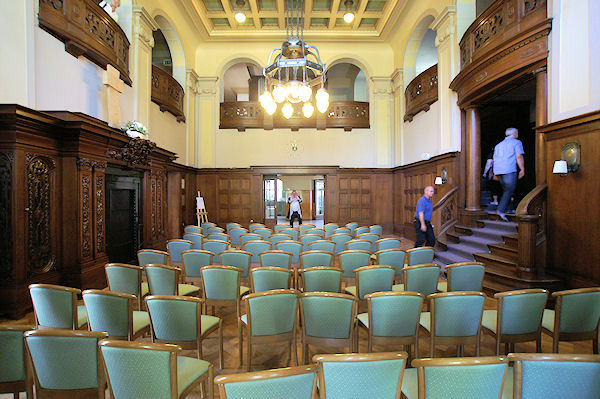 Die privaten Wohnräume der Familie Siems lagen in den Obergeschossen. Zu ihnen gelangte man über die an der Nordseite der Großen Halle gelegenen Treppe. Den Flur, der zugleich als Galerie dient, rahmt an drei Seiten eine Bogengliederung. Auf der Galerie steht auch eine eigens für die Familie Siems angefertigte Salonorgel.